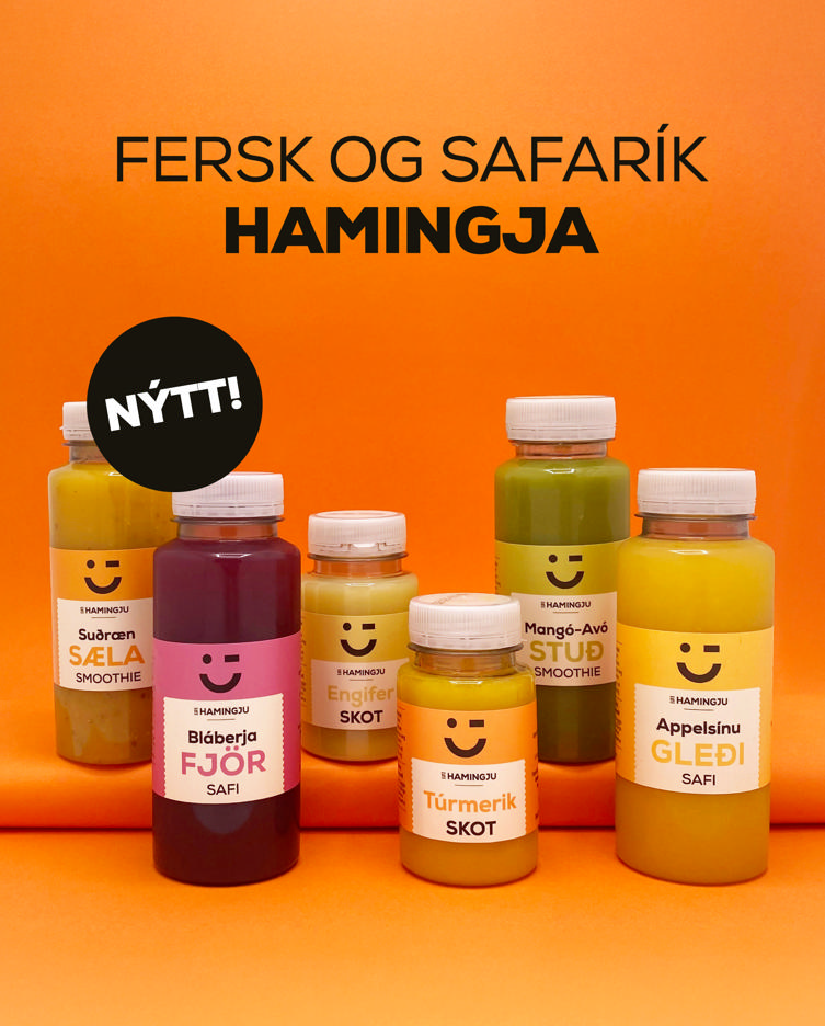 Frá Til hamingju er nú hægt að fá ferska kaldpressaða smoothie, skot og safa. Vegna þess ávextirnir og grænmetið er kaldpressað haldast öll vítamín og steinefnin sér, brögðin eru náttúruleg, litirnir fallegir og áferðin góð - svo er enginn viðbættur sykur!